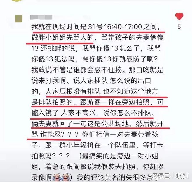 有许多自称知情的网友都透露了原因,不过都有些不同,比如说有网友表示这件事也并不是插队什么的,夫妻俩可能是第一次来,不知道要排队,结果闯进了年轻情侣的镜头里。