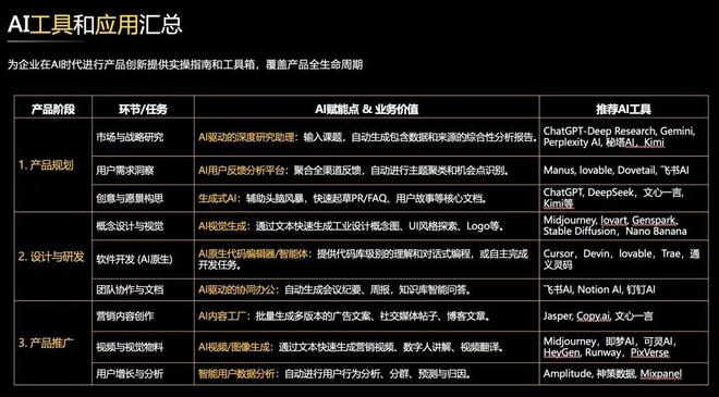 那么,关于AI时代如何做产品创新,闵蕾同样从产品规划、产品设计与研发以及产品推广这三个阶段做出了解释。