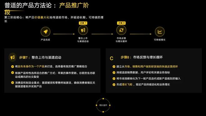 这一阶段的核心在于将产品价值最大化地传递给市场,并驱动长期、可持续的增长。例如可以借鉴苹果去把发布本身当作一个产品来打造,或是借鉴谷歌和腾讯,通过自己的生态来做推广等。