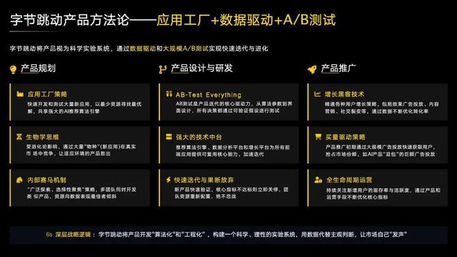 在产品设计和研发阶段,字节内部有一句话叫做“万物皆可AB测试”,一切都要拿数据说话。而且字节内容也投入了大量的资源去建立技术中台,来支撑它大量的“AB 测试”。